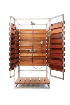 ProductsOborain Outdoor ShowerThis stainless steel and wood outdoor shower come as one package that can be assembled in 30 minutes.