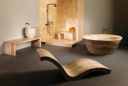 Smooth pebbles inspired the shape of this vessel sink collection.
