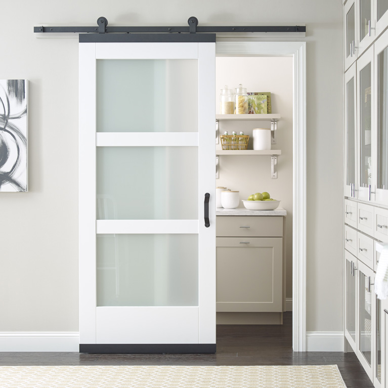 With the proper finish and design, these doors can enhance any space. Moreover, barn doors do more than simply separate two rooms. They are a perfect way to add a door in small spaces or to conceal shelving and storage areas. With new DesignGlide™ barn door hardware, JELD-WEN is making it easier than ever to bring the function and style of barn doors to almost any space. No reframing or custom doors required. It also offers a soft-close every time and won’t slam shut.