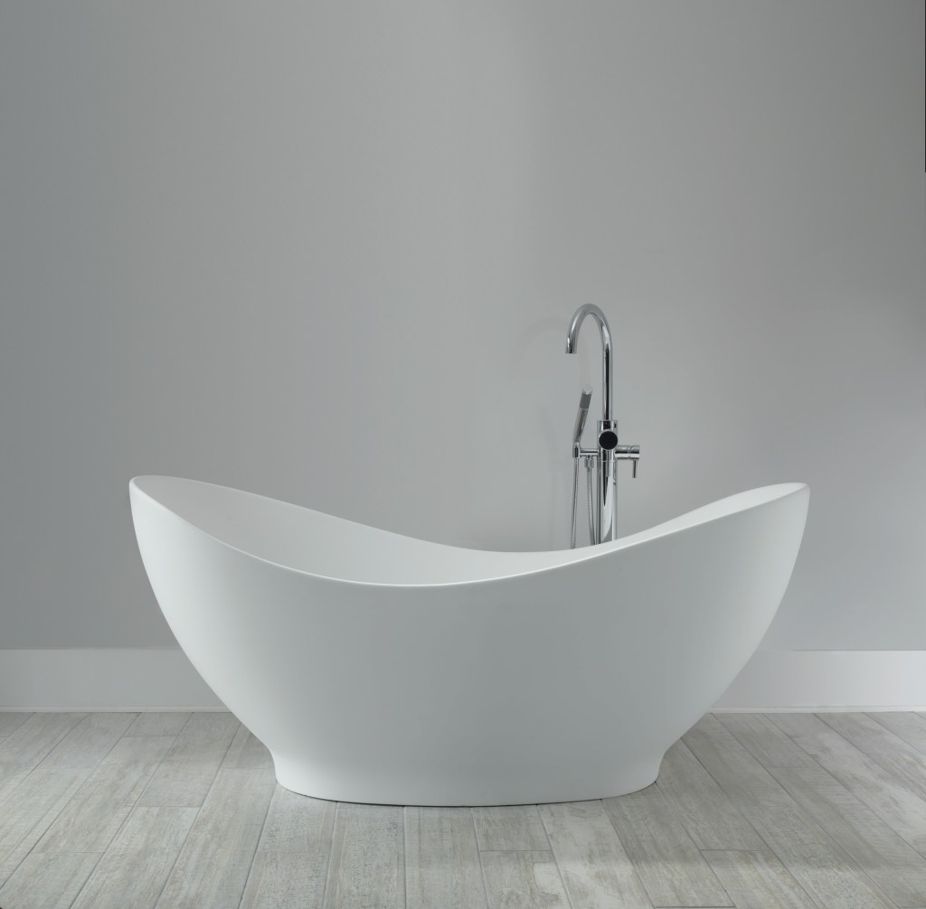 MTI’s juliet 2 bathtub is a petite version of the Juliet model that boasts the same organic design and fluid lines of the larger model. Made from MTI’s non-porous Engineered Solid Stone material, it features an integral pedestal and integrated slotted overflow. The Juliet 2, which measures 66 inches by 29 inches, is available in white or biscuit with a matte or high gloss finish.