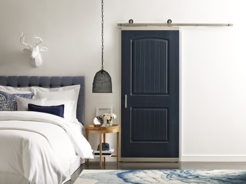 JELD-WENâs DesignGlide system uses accent rails and a matching soft-close rail and hardware to convert any standard-sized (80 inch) interior door into a barn doorâstyle fixture. This hardware solution addresses many of the challenges of barn door installation, including the need to use oversized doors or reframe an entryway in order to make them work. The hardware is available in satin nickel and matte black finishes. jeld-wen.com