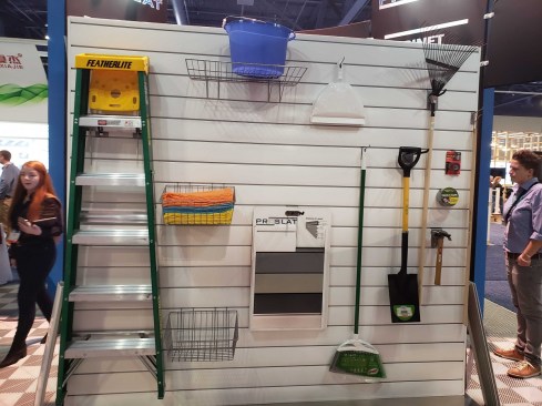 The ProSlat system utilizes a series of boards and hooks to create a built-in garage storage and organization system. The ProSlat boards are modeled after siding assemblies, with tongue-and-groove fittings that work to create a streamlined appearance. The system measures 24 feet wide, designed to cover the length of a garage wall, and is available in two kit sizes—4 and 8 feet high. proslat.com