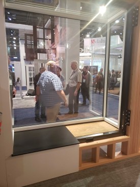 Folks at the NanaWall booth at IBS were busy opening, closing, and sliding the company’s latest product launch, the SL84 aluminum framed system. With its slim frame profile intersection of just 3 7/8 inches, SL84’s four-fold and six-fold panels can reach a maximum height of up to 11 feet, 6 inches, and widths up to 3 feet, 7 inches. The manufacturer’s TwinX mechanism reduces the number of exposed panel hinges by serving as a spring-loaded structural reinforcement that locks the panels together when the system is closed. When it’s open, the panel sets can be moved and stacked to either side of the opening, which maximizes layout flexibility. The system is available in inswing or outswing configurations, can accommodate open corner designs, and offers three sill options: hybrid, low-profile saddle sill, and flush. The running carriage rolls on two stainless steel wheels with a Gothic arch design supported by a double row of ball bearings. With two-point contact of each wheel to the floor track, the system glides quickly and easily by equally distributing weight on the stainless steel track. nanawall.com