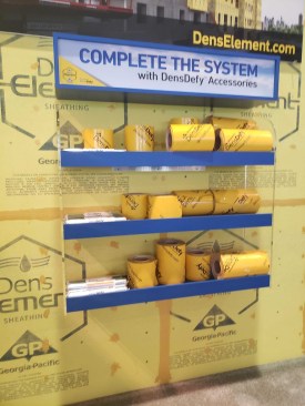 GP has expanded its existing DensElement gypsum board system with new flashing products in the DensDefy Accessories line. The DensDefy Liquid Flashing is a flexible liquid flashing, available in 20-ounce sausages. It is made to seal seams, rough openings, and other penetration points in wall assemblies, and eliminates the need for joint reinforcing tape. The DensDefy Transition Membrane, available in 6, 9 or 12-inch rolls, is designed to seal the transition between OSB and gypsum assemblies, as well as wide gaps or other difficult transition points. Both products are designed to withstand up to 12 months of environmental exposure. densdefy.com
