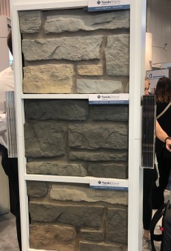 Tando displayed two new color options to its existing composite stone veneer profiles, Nordic Mist and Glacier Stone. The new colors are derived from current trends toward neutrals and light grays on housing exteriors, intended to complement darker shake and siding options to the same structure. Both color options feature Tando’s TruGrit, a matte texture with a low-gloss appearance and gritty feel. The stone profiles are designed for easy installation and moisture resistance and may be used in roofline or ground-level applications. tandobp.com
