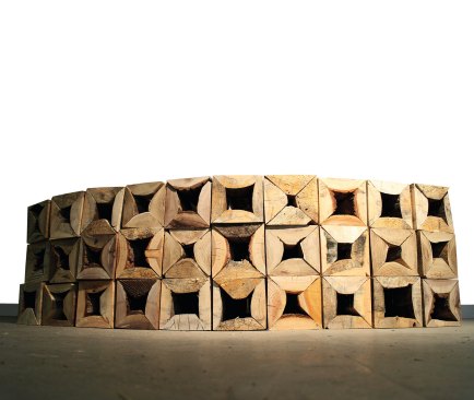 2016 Architect R+D winner IKD developed the Timber waste Modular Unit (TwMU) to combat the inefficiencies of unused waste from the milling process. TwMU is a hollow, load-bearing block that repurposes the C-shaped trim pieces of log that can comprise up to 38% of a felled tree. IKD turn the trim pieces’ flat, sawn faces out and create blocks that can stack in modular fashion.