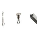 Takiya The Japanese hardware company offers a more architectural way to hang art or other products in the home. Its Koreder Line picture rail system consists of architectural grade aluminum rails, and stainless steel hooks and wires. It’s rated for various loads.