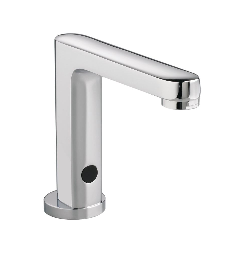 The Moments solid brass faucet features a proximity sensor that activates flow when a user’s hand is near. An optional thermostatic mixing valve with temperature pre-selects helps prevent scalding. American Standard. 800-442-1902. www.americanstandard.com.