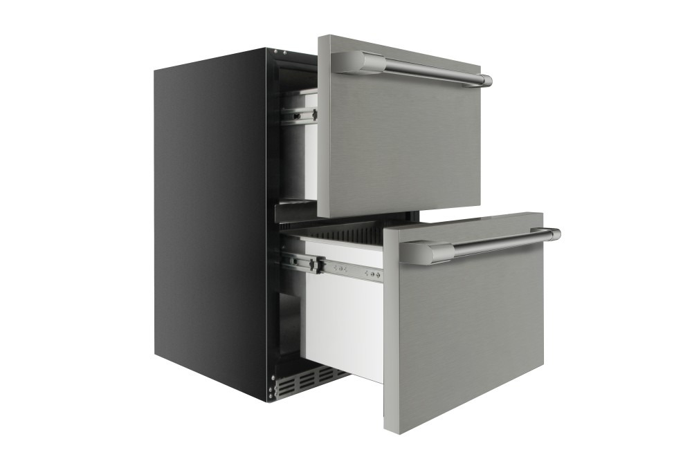 At $1,299 MSRP, the 24-inch Indoor/Outdoor Refrigerator Drawer is the most affordable refrigerator drawer of its kind in the industry, according to the manufacturer. The drawers are built from 304 stainless steel, and provide 5.3 cubic feet of packing capacity at a consistent internal temperature between 50 and 32 degrees Fahrenheit. Its ventilated cooling system is designed to automatically defrost its evaporator, which serves to prevent humidity buildup or freezing. Other features include self-close hinges, LED interior lights, and digital setting controls.