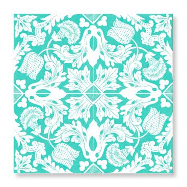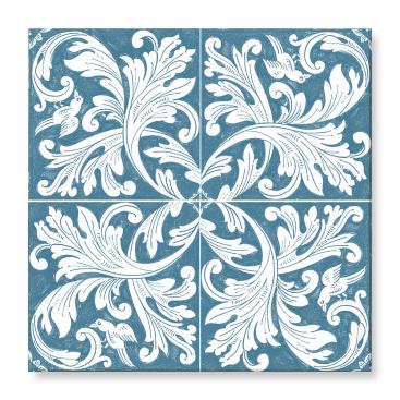 The classic blue china known as Delftware actually has Chinese roots but found its way across Europe in the 17th century. These 12-by 12-inch limestone tiles take their inspiration from the 1600s and are available in the traditional blue and white combination. But they’re also made in more modern tones, such as teal, magenta, and persimmon. The tiles are hand-painted or lithographed in holly, tulip/carnation, diamond/circle, fleur de lys, or quatrefoil designs; four 12-inch squares compose a complete design. The tiles can be installed indoors or in some outdoor applications, and on both walls and floors. From Clé, by tile designer Deborah Osburn for Tilevera. www.cletile.com