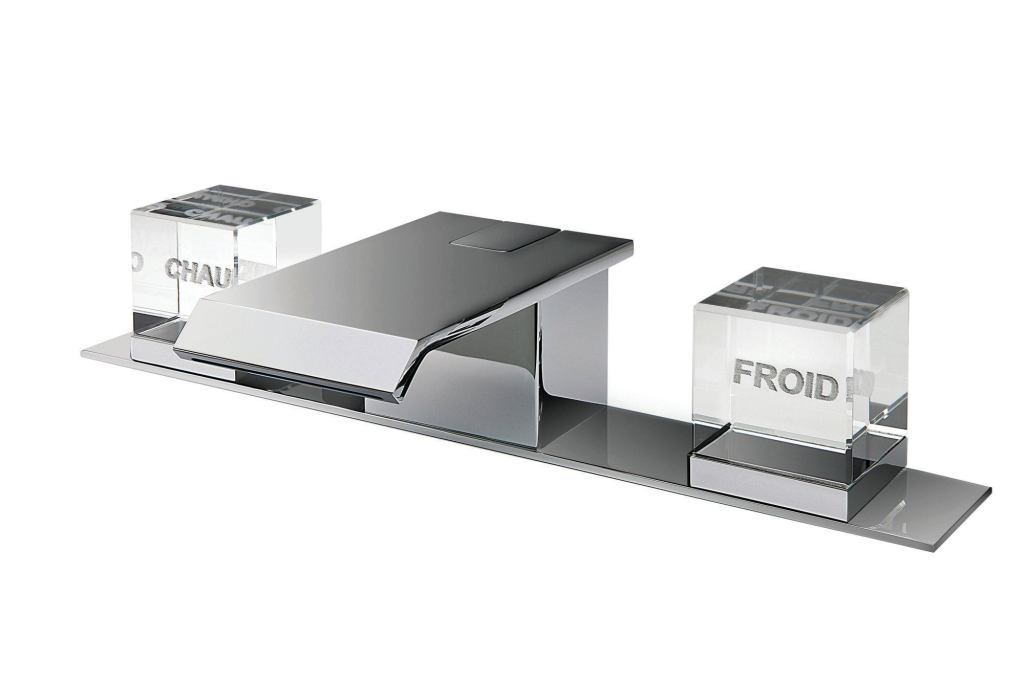 Vintage and modern can make a happy match when it comes to plumbing fixtures. The result of collaboration between THG and French designer Olivier Gossart, SO Optical glass faucet handles are laser-engraved in retro fashion with chaud (hot) and froid (cold), and are paired with a chrome-finish modern waterfall spout. The SO Collection also includes an integrated thermostatic shower system and Roman tub filler with integrated progressive-mixing hand shower. THG. www.thgstyle.com