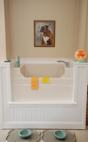 Wayne Harbin Builder of Yorktown, Va., included MTI’s pet spa in the garage of its 2007 Parade of Homes house and received lots of positive feedback from visitors. According to vice president Brad Harbin, the company has incorporated a variety of pet-friendly details into several of its homes over the years, including outdoor hot water lines for pet bathing and grooming centers. “People want to take care of their dogs just like the rest of their families,” Harbin says. “It’s amazing how much money they want to spend.” Human comfort and pet accessibility during the bath are important details.
