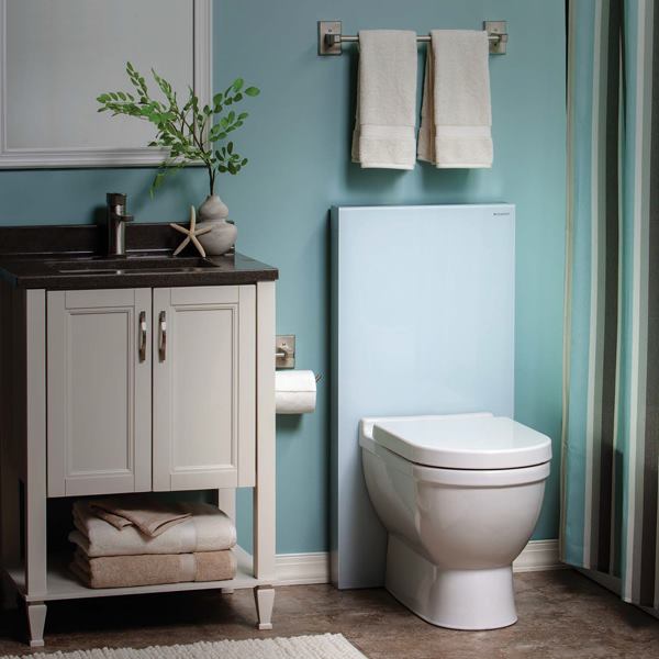 Geberit combines the look of a tankless toilet with the functionality of a traditional tank-and-bowl model in a hybrid unit whose thin profile is designed for contemporary bathrooms while its dual-flush feature helps users conserve water. Monolith can be mounted on floors or walls and its tank sits flush against the wall, leaving no gap. Users of the ADA-compliant unit can chose between 0.8 gpf and 1.6 gpf. The tank’s brushed-metal housing and black or white glass front enable easy cleaning. geberitnorthamerica.com