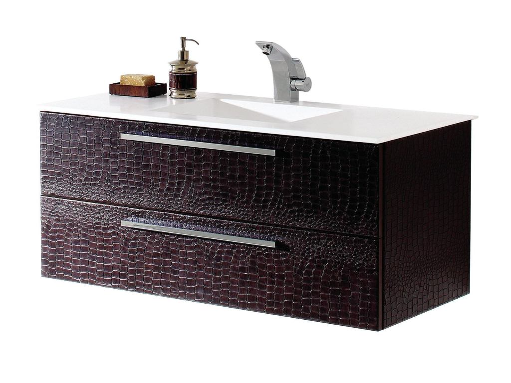 The Leather Series from the Armadi Art Aqua Collection of wall-mounted vanities by Topex attracts attention via its waterproof, scratch and humidity resistant crocodile-textured leather surfaces. Offered in 24-, 28, 36-, and 42-inch sizes with one or two water-resistant, leatherette-lined, soft-close drawers, the vanities can be purchased alone or as a set with a glass sink-top surface and a coordinating mirror. Topex. www.topexhardware.com