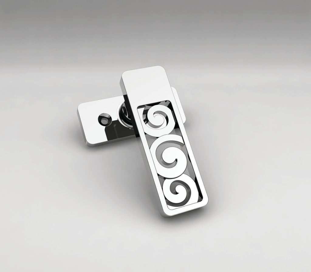 Window lever 5005 from the Bespoke Collection features artful spirals framed in a modern rectilinear form. Recommended finishes include: polished nickel, antique nickel, antique bronze with highlights, and antique gold. The eco-friendly foundry and atelier applies both modern and Old World manufacturing techniques to produce the handmade-to-order piece. SA Baxter. www.sabaxter.com.