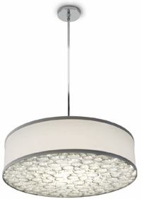 The Catacos pendant comes in polished or satin nickel and features a 30-inch-diameter, 8-inch-high textured shade in bone white. The incandescent lamp also is available as a wall or ceiling fixture and has dimming options. Boyd. 415.778.4300. www.boydlighting.com