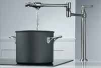 This deck-mount pot-filler faucet comes in traditional and modern handle styles and chrome or stainless steel finishes. It features a dual shutoff function and dual swing joints. Its style options let it coordinate with any Brizo kitchen faucet, the maker says. Brizo. 877.345.2749. www.brizo.com