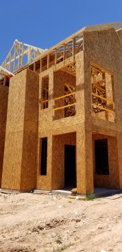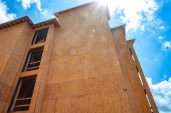 Installing wall sheathing vertically helps keep sheathing and siding in place when the wind blows. Bardwell Homes, based in Baton Rouge, La., uses WindBrace XL extended length OSB panels, enabling crews to tie the top plate to the bottom plate with a single panel. “The panel is literally locked in,” says Michael Phung, vice president of construction and development at Bardwell Homes. “The nail patterns also are more accurate.”