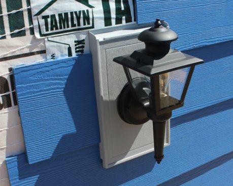 3. Specially designed mounting blocks. When it comes to water management systems for openings such as vents and electrical, many builders simply tape around the opening and cover it with a makeshift treated piece of lumber. But that slipshod method often creates a weak spot for moisture to enter the structure. A better way is using specially designed mounting blocks that are installed similar to window headers.
