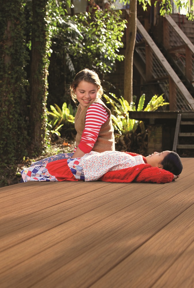 Wolf’s new Terrace composite decking comes in five different colors, including pumice and almond. According to the manufacturer, it’s a natural fiber-polymer composite made in the U.S. with what the company calls stranded-core technology. The composite core is wrapped with a resin capstock that has a deeply-embossed variegated woodgrain texture. The 7/8-inch-by-5 1/2-inch decking is available in 12-foot, 16-foot, and 20-foot lengths, and in both grooved and square-edge versions. Matching 1/2-inch-by-11 1/4-inch-by-12-foot rimboards are also available. The decking has a 25-year warranty against stains and fading. Wolf Home Products