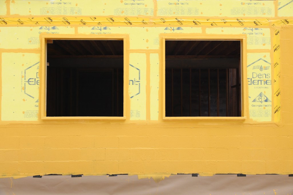 The DensDefy Liquid Barrier is a single-component, monolithic, elastometric, STP-based water-resistive barrier and air barrier, designed to protect against water and air intrusion. When applied, the coating cures quickly—even in wet conditions—and is vapor permeable to allow damp surfaces to dry.