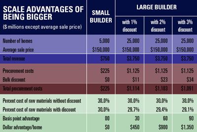 Almost every builder is addressing the cost-cutting process. Opportunities have been identified on local, regional, and nationwide levels. Given the local nature of this business, it is unlikely that the entire 50 percent of cost of goods sold represented by sticks and bricks can be procured on a nationwide basis; however, builders do have concentrated market share positions in the top MSAs and are working to leverage their size in their biggest markets. National purchasing opportunities could be secured in products such as floor covering, bathroom fixtures and fittings, HVAC, and water heaters, although regional procurement of lumber, concrete, and drywall is unlikely to change. Locally, builders monitor competitive advantage by assessing the value per square foot of their product offering. As the top MSAs become more competitive, we expect effective cost management—which drives superior customer value—to be differentiate among the “haves” and “have-nots.”