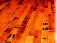 Distinctive cooper’s marks, vineyard notations, date stamps, and winemaker initials are all prominently on display in a line of hardwood flooring produced from reclaimed wine barrels. Stained and aged by wine and oxidation, the wood is allowed to retain its natural colorations from its life as a wine barrel.