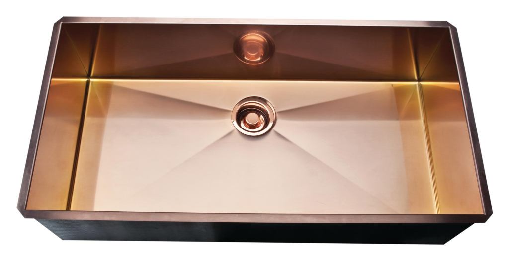 ROHL introduces a commercial-grade, copper-plated sink made from 16-gauge stainless steel. The single bowl features rounded interior edges and an insulated undercoat to reduce splash-back noise. The sink also is available in brushed stainless steel. ROHL. 800.777.9762. www.rohlhome.com.