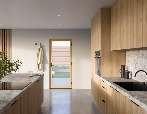 The newest editions of Marvin’s Ultimate Swinging Door and Ultimate Swinging French Door feature more expansive glass than previous editions, allowing for more light and views. The doors feature extruded aluminum exteriors and warm wood interiors, available in heights of up to 10 feet in four-panel configurations and widths of up to 14 feet, with a standard panel thickness of 2 1/4 inches. All feature Marvin’s concealed lock status sensor, which relays the door’s lock status to smart devices. marvin.com