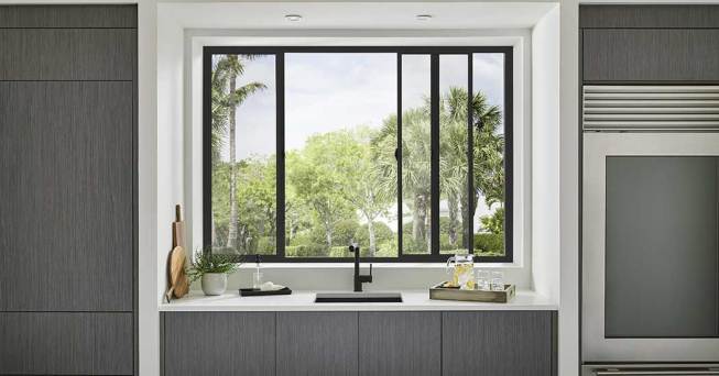 The industry’s newest windows and doors are highly attuned to the most popular design aesthetics—including dark interior frames, thin sightlines, and configurations that adapt to traditional and modern settings alike. Below are a few examples of the windows, doors, and hardware available to complete today’s home design schemes.
