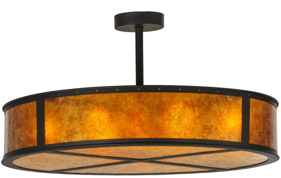 The Smythe Craftsman Semi-Flushmount from Meyda Lighting is a rustic-style ceiling fixture with silver mica side panels and a matching bottom diffuser and crosshatch design. It’s enhanced with an oil-rubbed bronze finish, is UL and cUL listed for damp and dry locations, and allows diffuser color and metal finish customization. The fixture is available in 28-inch, 32-inch, 44-inch, and 44.5-inch widths. meyda.com