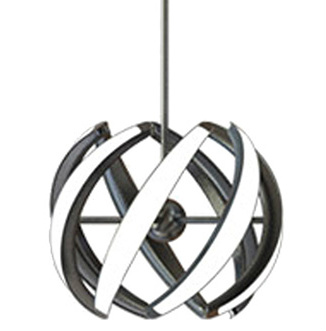 The Swirl LED pendant from Blackjack Lighting provides energy-efficient light in a visually striking package. The light uses replaceable LED strips mounted inside metal stampings. The fixture arms are curved to dissipate light through the room and give a modern, sculptural appearance. Buyers can choose between three diameter sizes and customize the height with an adjustable 42-inch stem kit—additional 24-inch stem extenders can be purchased separately. The pendant includes a dimmer function and offers a 3000K CCT.