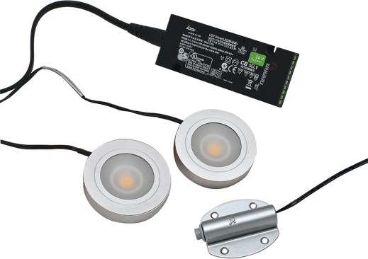 The Loox LED lights and accessories line from Rockler Woodworking and Hardware includes several lighting solutions for task and accent lighting, including puck, bar, and ribbon lights. The lights feature plug-and-play assembly and a compact profile to allow their use in various applications, such as under cabinets, inside drawers, or as wall spotlights. Wattage and CCT vary by product; most provide a “warm white” light with a 3000K CCT, though a “cool white” option of 6500K is offered for ribbon lights. Various sizes and finishes are available for puck and bar lights, as is an optional dimmer switch.