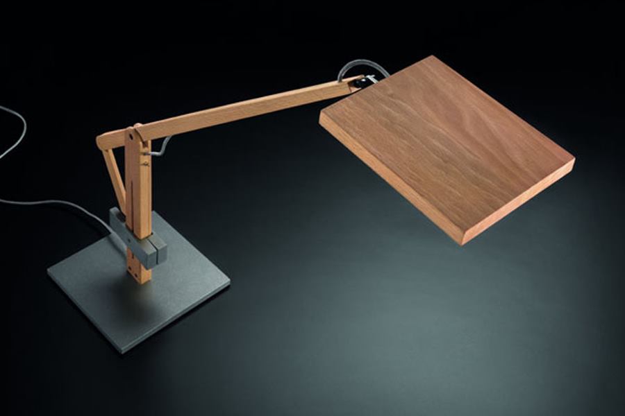 An architect-designed task lamp combines the light look of beech wood with industrial steel