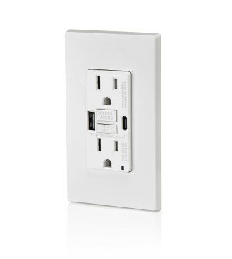 Leviton has introduced its new SmartlockPro Self-Test GFCI Combination USB Type A/Type C In-Wall Charger. The device combines ground-fault protection with two high-powered USB ports—one Type A port and one Type C port—to deliver maximum power for faster charging.