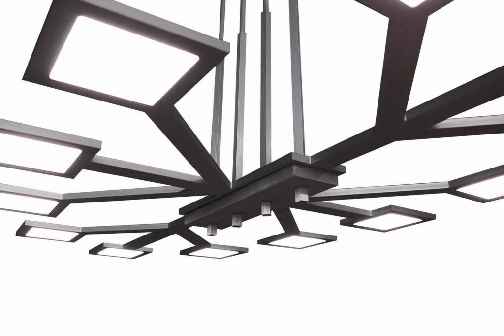 Vela, a contemporary chandelier from WAC Lighting, holds 24 organic LEDs in its laser-cut brushed aluminum frame, projecting ambient light upward and illuminating the area underneath. Aircraft suspension cables let homeowners adjust its thin profile up to 36 inches. The light uses 65.6 watts, can be dimmed, and mounts directly to the junction box. WAC Lighting. 800.526.2588. www.waclighting.com.