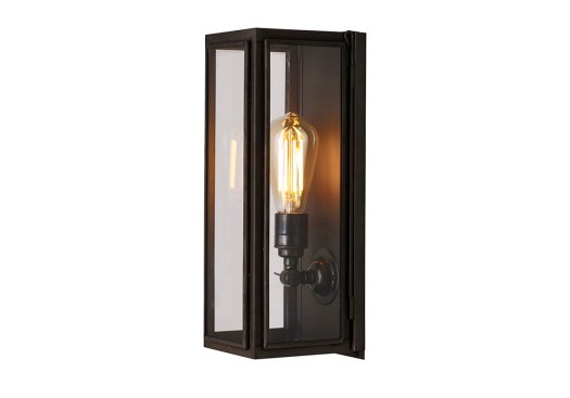Davey Lighting has created a box wall light with a clean industrial design that suits both traditional and modern outdoor applications. Made of brass with an antique weathered brass finish, the handmade wall light features glass panels with brass-beaded frames applied externally to three sides. Removable pins at each side allow access and/or removal of the box front. The light is available in five sizes: miniature, small, medium, and two different narrow sizes. The panels are offered in clear or frosted glass. originalbtc.com