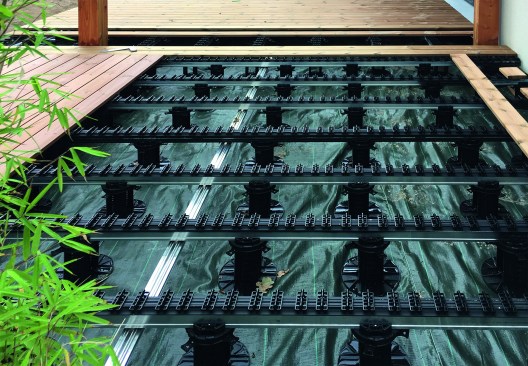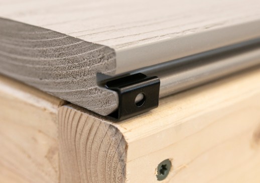 The GRAD underdeck structure system, new this year to the U.S. market, uses a series of aluminum rails, grad clips, and pedestals to fasten wood or composite deck boards in place without screws or separate fasteners. The grad clips are pre-mounted on the aluminum rails, with a variety of board width configurations available, and can withstand up to 396 pounds of pressure per fixing point against warping. The rails resist moss, algae, salt, water, UV, insect and fungus damage, and do not decompose or undergo shrinkage. Pedestals may be mounted on soil, solid foundations, or elevated deck posts. gradconcept.com