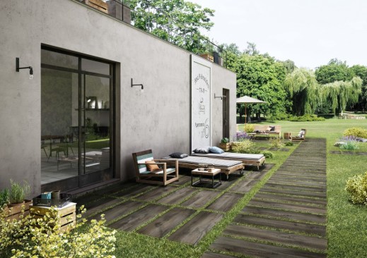 Daltile’s Xteriors Program includes myriad tile products in wide-format editions suitable for use as decking. Delegate is a slate-inspired porcelain tile available in 20-by 40-inch pavers in a choice of light or dark gray. Three of Dignitary’s six neutral colors, patterned after French limestone, are available in a 24-by-24-inch tile. Commissary’s five wood-look colors and patterns are available in 24-by 24-inch and 16-by-48-inch pavers, and Assemble’s natural stone look is available in 30-by-60-inch, 32-by-32-inch, and 30-by-30-inch formats. daltile.com