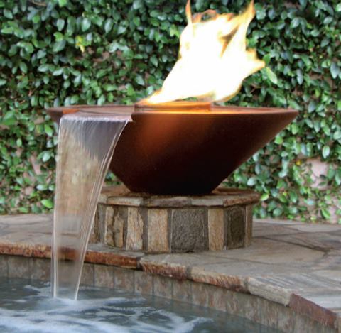 For larger features, the same principle of separation applies. For instance, if you want to install a fire trough in front of a water wall, you should create different receptacles for the fire bars and the spill-over from the wall, says Bob Roman, president of Fire by Design, a Henderson, Nev.-based manufacturer of fire and water features.