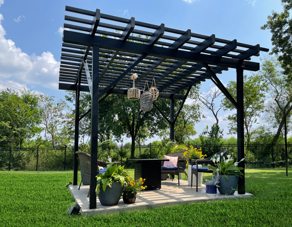 Customers can select from three freestanding pergola styles available for download, including one traditional and two modern options. Each style can be assembled in many configurations to accommodate different backyard functions.