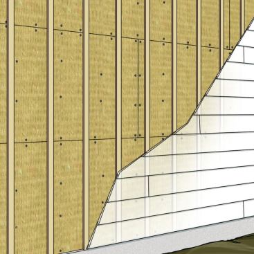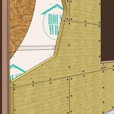 Builders apply rock wool sheets like rigid foam insulation, attaching the insulation to the sheathing first, then applying strapping over the insulation as nailing for siding. It’s a good idea to apply housewrap to the sheathing before attaching the insulation. The key concern is to protect the wood sheathing, because the water-repellent, drainable rock wool won’t be harmed by incidental moisture.