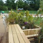 The spacious deck with its built-in seating, biofiltration beds, and vegetable gardens nearly doubles the interior foot print.