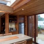 The decking runs not only around the house but also through the center, allowing occupants to effectively live outside during summer and bringing a sense of the outdoors inside during winter.