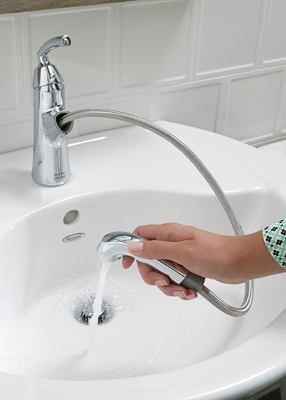Beyond the daily cleanliness routine, users can now more easily wash their hair, small pets, or children in the bathroom sink, fill flower vase or bucket, or rinse down the sink for quick clean-up. The pull-out comprises a flexible stainless-steel hose that extends up to 24 inches.