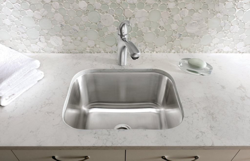 The term “utility sink” conjures images of bulky, squared-off plastic tubs. Not so the undermount Stellar Laundry Sink. Constructed from surgical-grade stainless steel, with a brushed finish that’s easy to keep clean, the sink has a generous 23-by-17¾-inch bowl that’s 12 inches deep.