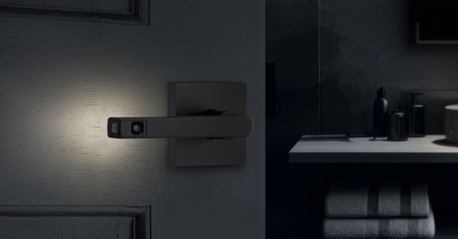 The new Halifax LED Lever features an integrated light that illuminates the handle when motion is detected, making it easier to locate in the dark. A built-in motion sensor activates the light when movement is detected within 10 feet. The light turns off after seven seconds of no motion to conserve energy. The LED light emits a natural white glow, and the lever’s design includes a sleek square rosette that adds a contemporary touch to any interior. kwikset.com