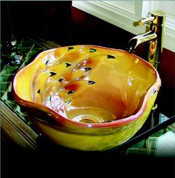 Using a combination of hand-built and wheel-thrown techniques, Bonita Goodberg crafts uniquely designed ceramic lavatory sinks that incorporate richly layered hand-applied and airbrushed glazes. “We work closely with the client on these projects. Bonita Ceramics can accommodate most requests for special design elements and color coordination,” says Goodberg. Straight, notched, softly flared, and undulating rims are hallmarks of Goodberg’s sculptural sink designs, as are interior elements such as leaf and fossil impressions and raised vines. Sink colors can be custom coordinated to match any sample of tile, flooring, paint, or wallpaper. Clients receive a fired color tile for approval before a custom sink is built. “In addition to our large library of beautiful underglaze colors, we specialize in the application of exotic metallic and opalescent overglazes that highlight the detail of our hand-imprinted leaf and animal images,” Goodberg says. The sinks are made from a dense, fine-bodied white clay that becomes resistant to chipping and cracking once hard bisque fired to more than 1,150 degrees F. Each sink is signed by Goodberg.