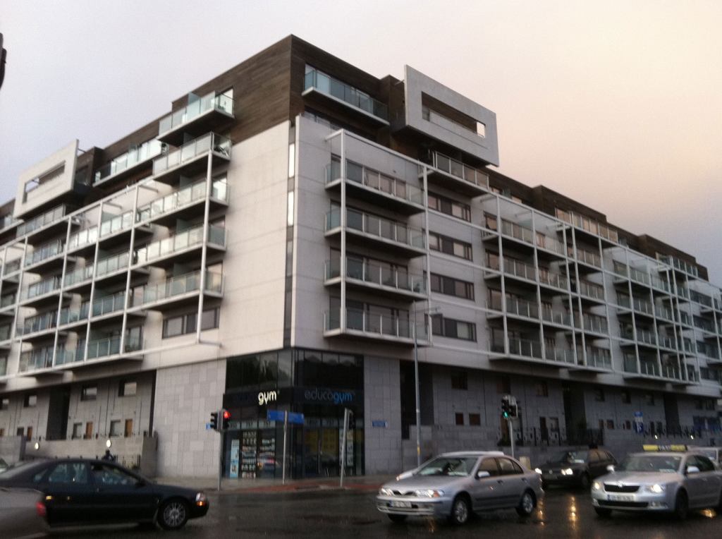 In June I spent some time in Dublin, Ireland, where I noticed a typically European compatibility between old and new buildings. I thought the juxtaposition of historic and modern architecture seemed natural and comfortable, rather than jarring or forced. Being particularly interested in residential design, I noticed many good-looking, newish multifamily buildings (probably constructed during the country’s economic boom in the years up to 2008) that reminded me of projects I’ve seen on the West Coast of the United States. Many of them were mixed-use, and looked like places I’d like to live. I’ve enclosed a photo of a typical example.