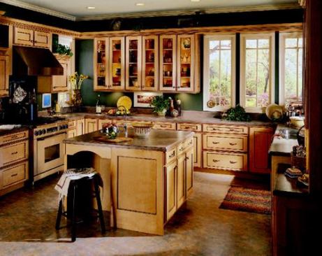 WARM AND CASUAL Jan Roberts, director of the design center and merchandizing for Lombard, Ill.-based Town & Country Homes, tracks the cabinetry features that are selling well in the design center and then promotes them in the model homes. “It really does boost upgrade sales,” she says. About 70 percent of the builder’s predominantly entry-level and move-up buyers switch out their standard oak cabinets for cherry, ash, and maple. And Roberts says customers routinely choose cherry cabinets, spending an extra 15 percent for chocolate-colored glazing and then pairing the cabinets with richly colored countertops.